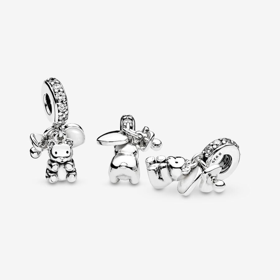 Whether you want to celebrate a new baby or show your love of the little things, our teddy bear charm adds a touch of whimsy to your bracelet style. This sterling silver dangle holds a trio of baby’s essentials: a plush teddy, a soothing dummy and a loving heart. It’s detailed with silver enamel and cubic zirconia stones. The charm makes for a perfect gift for a baby shower or a cute addition to your Pandora Moments bracelet as a personal reminder of a bundle of joy in your life.