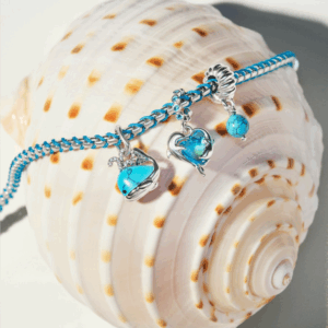 Braided sterling silver box chain with a touch of turquoise textile cord. Elevate your style with a unique combination of fabric and metal.