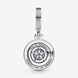 Reporting for duty: carry our Marvel The Avengers Captain America Shield Dangle Charm and share your love for the Marvel Cinematic Universe with the world. Captain America’s legendary shield shines bright in hand-applied red, white and blue enamel. Engraved with the message, “TRUE TO YOURSELF,” this sterling silver stunner symbolizes hope and protection. Add this charm and more of your favorite heroes to our Pandora Moments Marvel The Avengers Logo Clasp Snake Chain Bracelet.