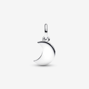 Give them the moon. This sterling silver double dangle charm features one crescent moon crafted in moonstone iridescent glass, and another engraved with a heartfelt message. A radiant reminder of love’s infinite glow.