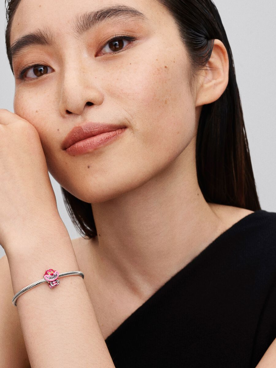 Inspired by Disney’s Cheshire Cat, this sterling silver charm features vibrant enamel colors, glow-in-the-dark eyes and a toothy smile. Playful details and the ©Disney logo complete the magical design.