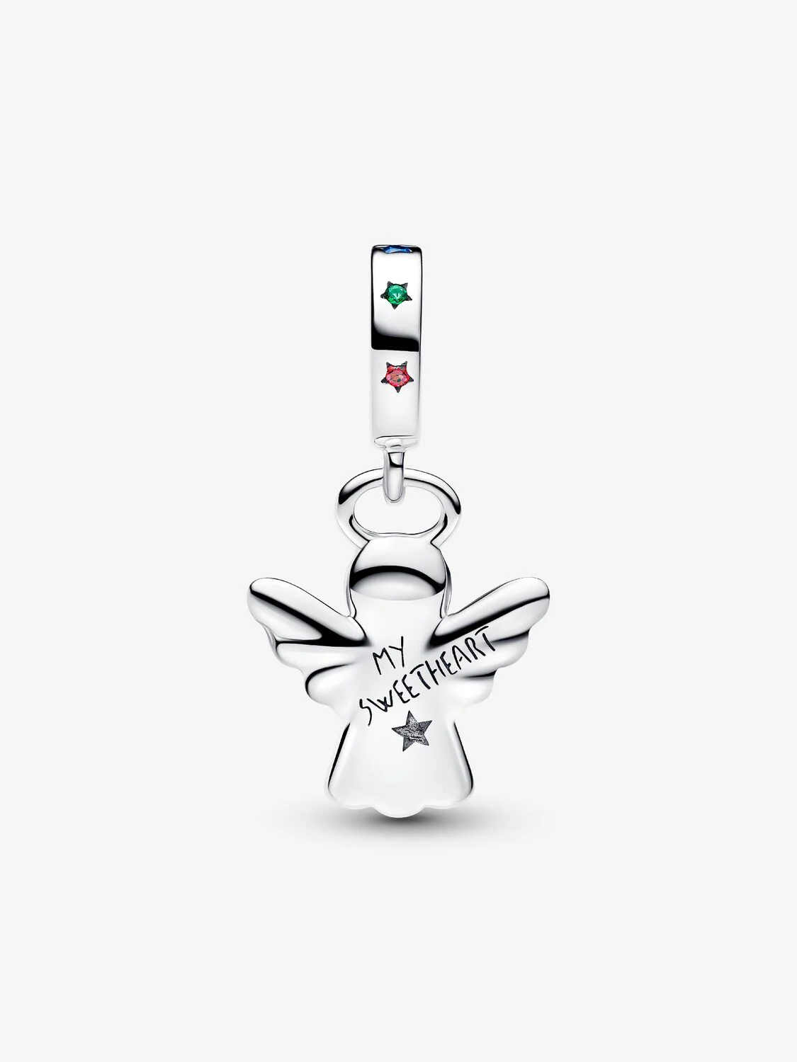 Made with love and full of magic. This sterling silver gingerbread angel charm is hand-finished with colorful enamel, man-made crystals and ‘MY SWEETHEART’ engraved on the back. A festive favorite, sweet as can be.