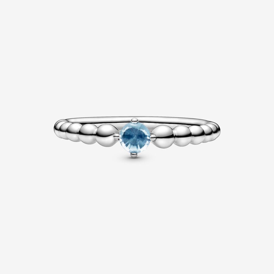 March Aqua Blue Beaded Ring