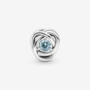 Add a pop of color to your bracelets and pendants with this Sea Aqua Blue Eternity Circle Charm. This special piece is made in the shape of an infinity braid and is set with a aquamarine-colored crystal at its center. Symbolizing eternity, add this sparkling charm to your styling to give your everyday jewelry a bright update.