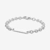 A watchful eye of security. A reminder to look beneath the surface to find inner beauty. A symbol of divine protection. Whatever The Eye means to you, this bracelet beautifully displays your affinity for this well-known symbol. Attached to a sterling silver Pandora ME Link Chain Bracelet is an eye-catching Pandora ME Bright Purple Styling Heart Connector featuring transparent bright purple enamel over a sterling silver base creating a metallic finish. It holds the Pandora ME The Eye Medallion with hand-applied magenta and green enamel and set with red, blue and green brilliant-cut crystals.