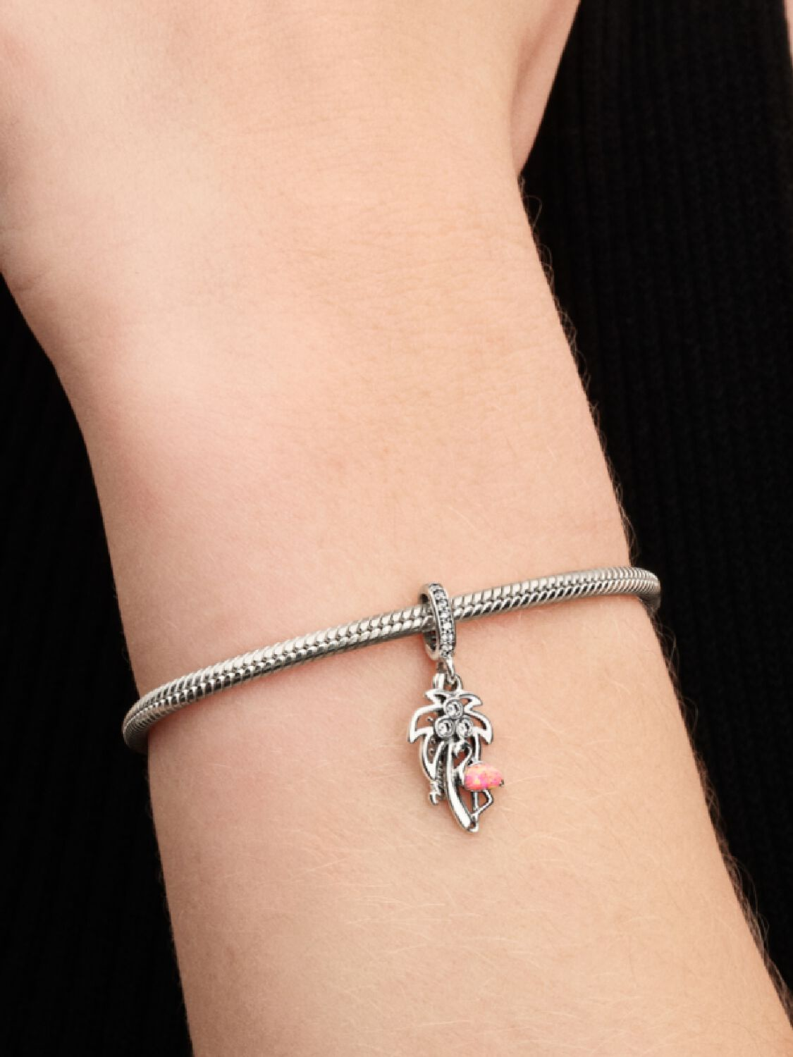 Celebrate the magic of Miami with a palm tree, flamingo, and handwritten ‘Miami’ script, all set with stones and enamel details.