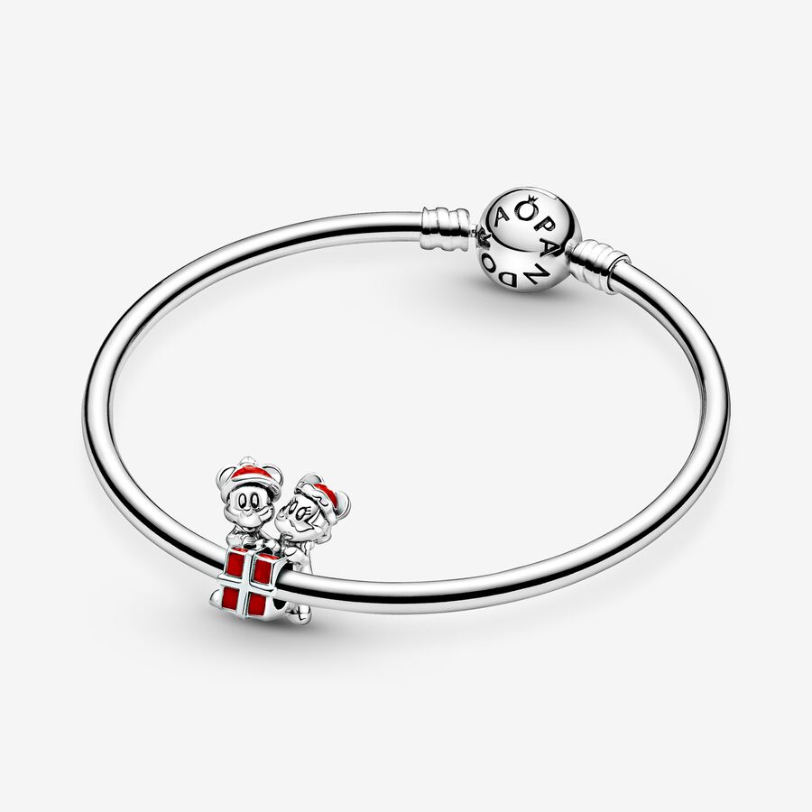 Make the holidays feel extra special with the and Present Charm. Hand-finished in sterling silver, this design includes ’s and with grooved eyes and eyelashes to highlight their features. is wearing a scarf and holding on her shoulder. Both are wearing Christmas hats decorated in hand-applied red enamel that match the present they’re holding that includes a ribbon and bow. Featuring the Pandora and logos on their backs, gift this piece to someone special to show you’re excited to spend the festive season with them.