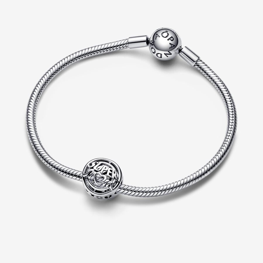 A meaningful charm for the one who’s always there to save the day – Mom. The hand-finished Mom Hero Openwork Charm is crafted from sterling silver and features a circular openwork pattern on each side, with cut-out lettering reading “SUPER M❤M” on one side and “I❤YOU” on the other. With a modern, pop-art inspired look and a powerful message, it’s the perfect charm to show her that you see and appreciate all the things she does for you, both big and small.
