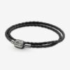 Channel the depths of the ocean and the calm of a midnight sky. The Moments Round Clasp Blue Braided Leather Bracelet is crafted from deep blue braided leather and finished with a round sterling silver clasp and threaded sterling silver end caps. Style it with up to 9 charms or dangle charms to perfectly offset your favorite charms.