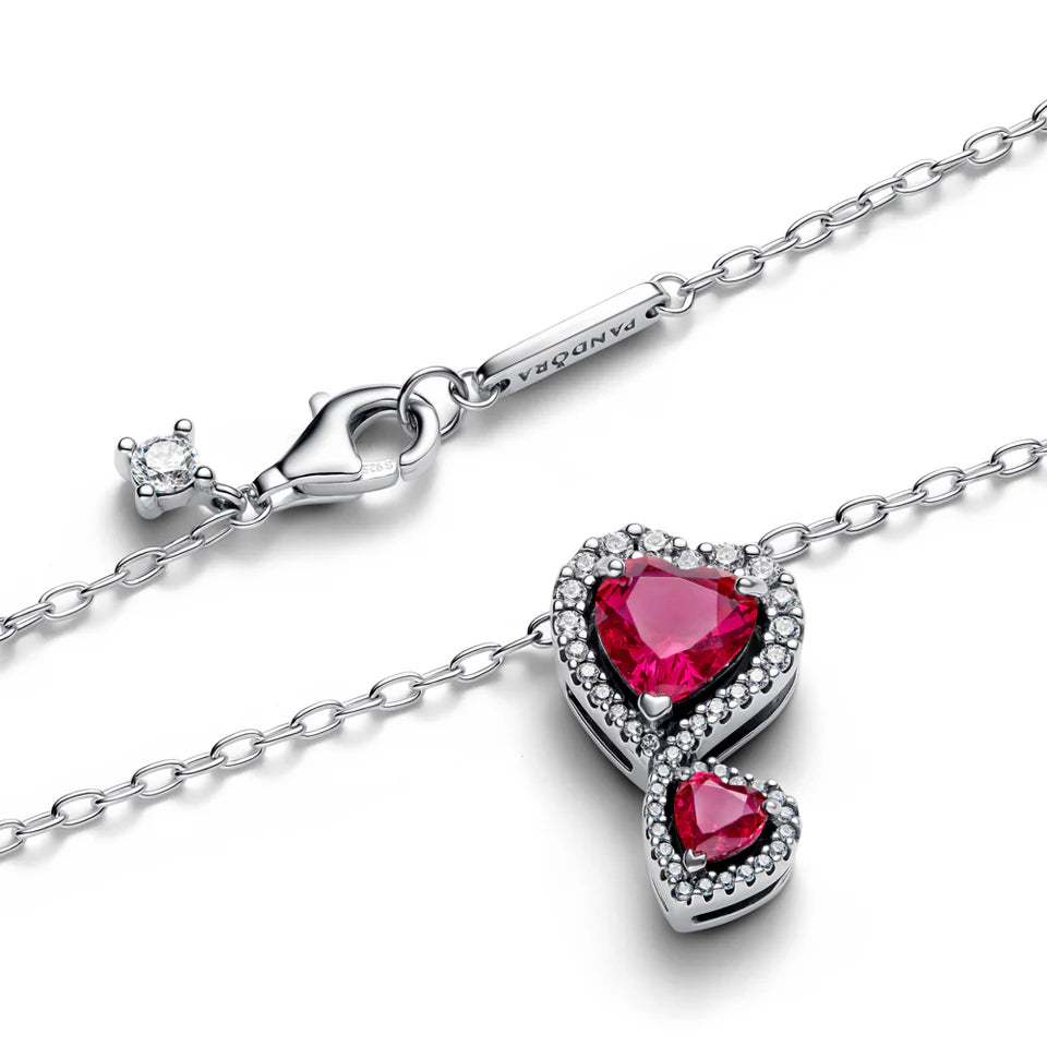 Pandora Red Halo Hearts Pendant Necklace