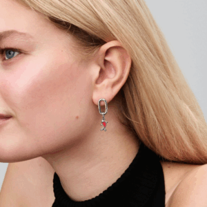Red Murano Glass Koi Fish Mini Dangle Charm Sterling silver