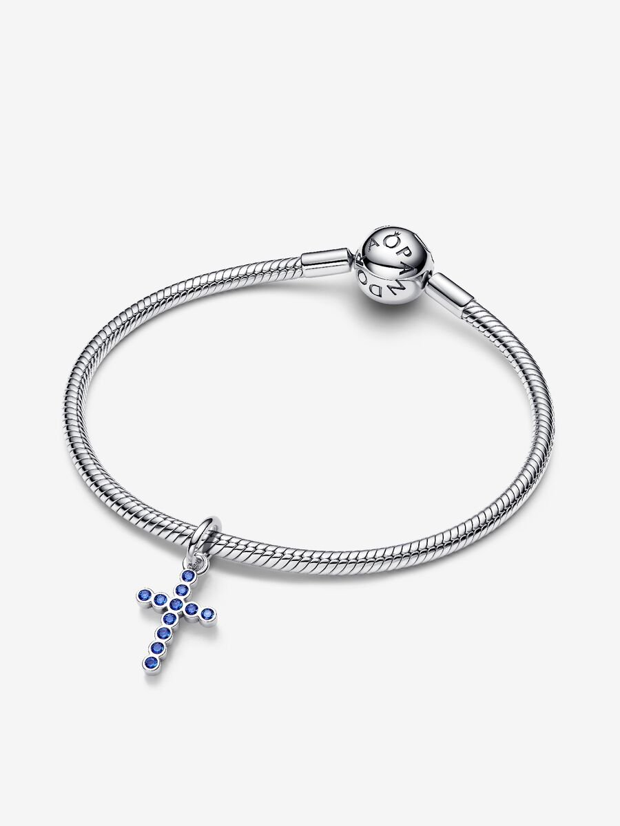 Faith takes shape with this universal symbol of hope and love. Blue man-made crystals form a sparkling cross set in cool sterling silver — a meaningful piece that shines on its own or layers well with others.