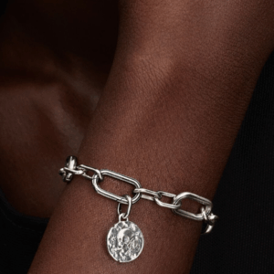 Embrace the now in sterling silver. With weathered detailing and a flush-set stone, this vintage-inspired medallion features a skull motif on the front and a ‘CARPE DIEM’ engraving on the back.