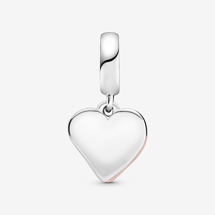 Two hearts are better than one. This two-tone Sparkling Freehand Heart Dangle Charm reminds someone that “all of me loves all of you”, as its engraving says. 26 brilliant-cut clear cubic zirconia adorn a freehand heart motif in 14k rose gold plating, encircling a tiny heart. Behind this heart sits a sterling silver pendant with an engraving. It’s the perfect gift to show your love for another or yourself.