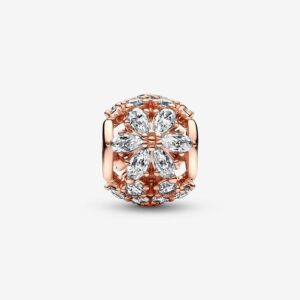 Bring the beauty of nature to your jewelry with the Sparkling Herbarium Cluster Round Charm. This 14k rose gold-plated charm is composed of four clusters of clear cubic zirconia stones forming a spherical shape. The clusters alternate between two subtly different designs created with round or pear-shaped stones around a cluster of microbeads at the center. An elegant reinterpretation of how nature forms beautiful shapes with petal and leaf-inspired elements.