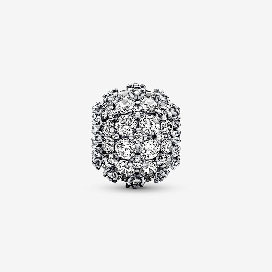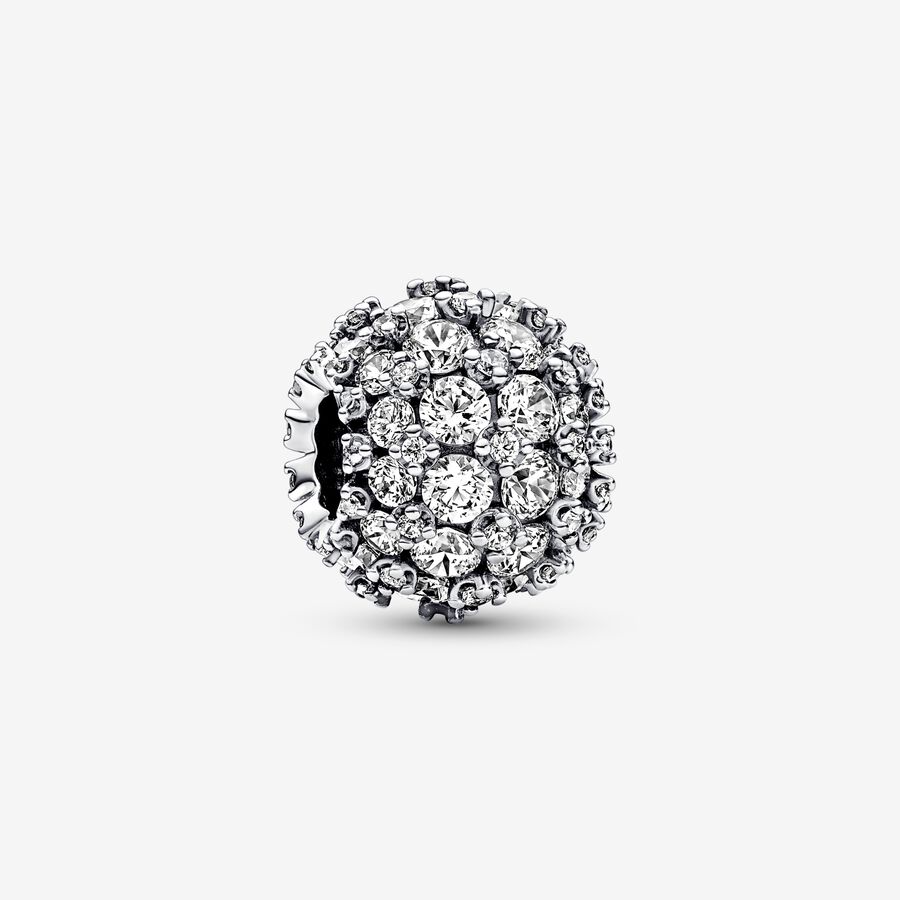 Add a touch of timeless sparkle to your look with the elegant and symbolic Sparkling Pavé Round Charm. This spherical sterling silver charm is set with a total of 88 clear cubic zirconia stones in different sizes, creating a voluminous geometric effect. 88 is a powerful number that represents progress, success and good fortune. It also resembles a double infinity symbol, representing the unlimited possibilities the future holds. Add it to your favorite jewelry styling or gift it to a loved one as a symbol of good things ahead.