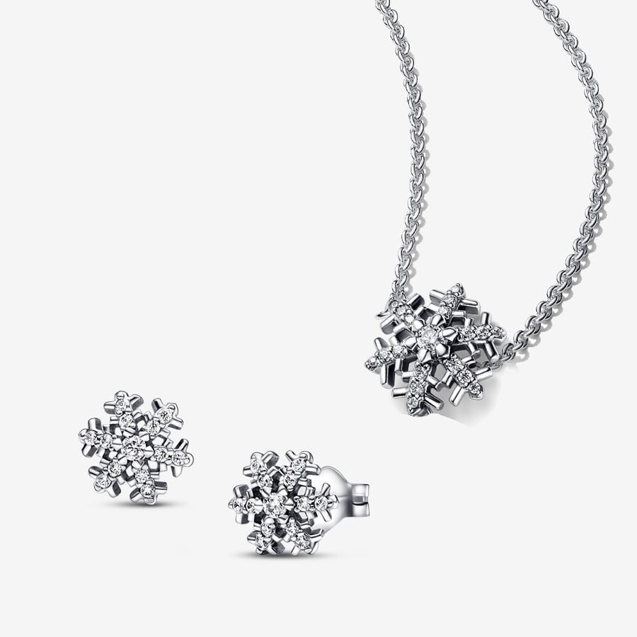 The Sparkling Snowflake Pendant Necklace and the Sparkling Snowflake Stud Earrings are both part of Pandora’s winter collection. The pendant necklace is made of sterling silver and features a snowflake motif with clear cubic zirconia pavé for a glittering, frosty look. It comes with an adjustable 17.7-inch chain. The stud earrings are also made of sterling silver and feature clear stones set in the form of a star-like snowflake formation with micro-beading in the center. These pieces would make a perfect addition to your winter wardrobe or a thoughtful gift for someone special.