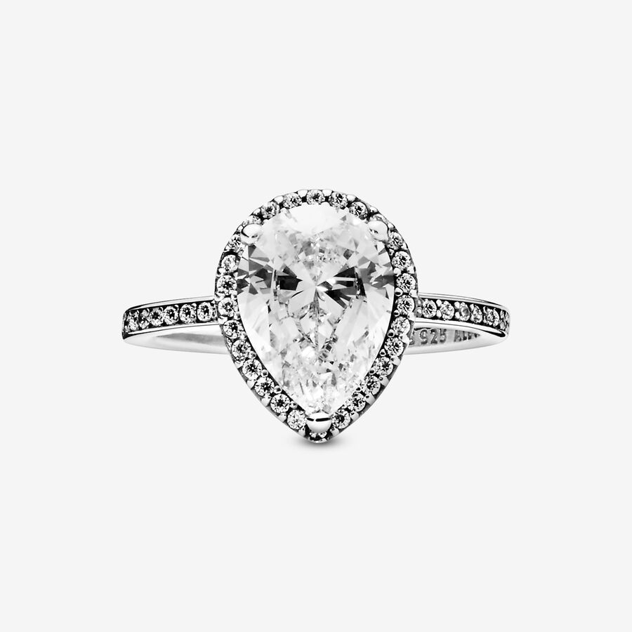 Sparkling Teardrop Halo Ring