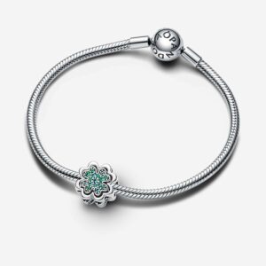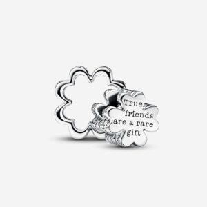 Bring in double the luck with the Splittable Four-leaf Clover Charm. This four leaf-clover shaped sterling silver charm packs more than meets the eye, as its inner clover is splittable from its outer shell and can be worn as a whole separate charm of its own, making it the ideal piece to gift to someone close that needs a little extra luck. The inner clover features the engraving “True friends are a rare gift” on its back and “Lucky to have you” on its side, heart-shaped leaves as well as green man-made crystals in two different tones. This Moments charm is filled with positivity and symbolism that stands for faith, hope, love and luck – and who doesn’t want that!Compatible WithMomentsStoneMan-made crystalColourGreenThemesFamily and FriendsProduct TypeCharmsItem792752C01MetalSterling silverMaterialNo Other MaterialDimensionsDepth:7 mmHeight:11.1 mmWidth:10.7 mm
