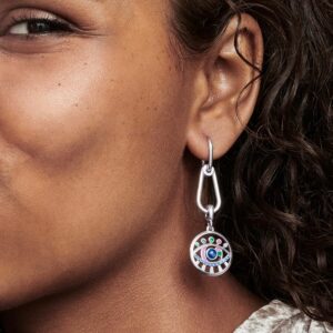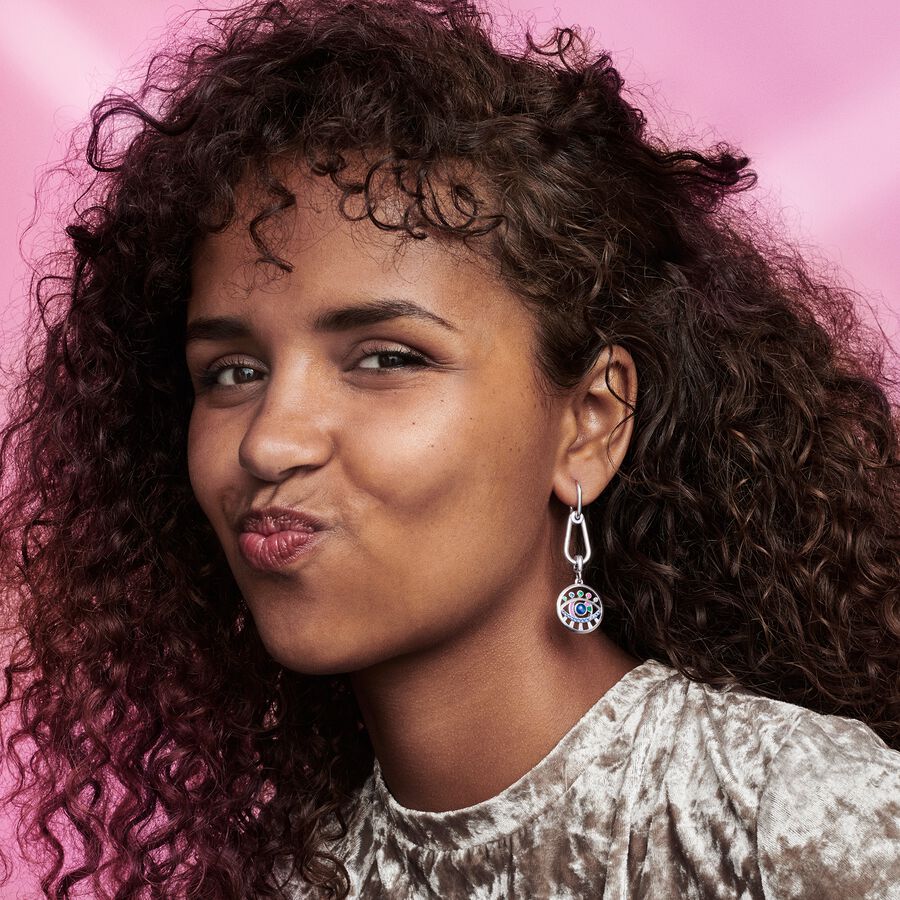 Make sure all eyes are on you with the ME The Eye Medallion. Hand-finished in Silver plated, our meaningful medallion features an eye motif that evokes looking deep beneath the surface at inner beauty. Featuring hand-applied magenta and green enamel, this significant amulet is set with red, blue and green brilliant-cut crystals, for a vibrant statement you can mix and match across your link chains. With a simple click-to-close bail, style yours on your ME closed styling links and openable styling connectors across link chain bracelets, necklaces and hoops. Please note this item is only compatible with ME jewelry and will not fit our other collections.Discover how to mix and re-mix your ME look here.