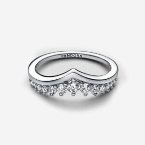 Let the past inspire your style with this Timeless Wish Floating Pavé Ring, a modern interpretation of classic ring styles. Crafted from polished sterling silver, the ring band is set to sparkle with a row of pavé underneath the arch of the wishbone, graduating in size to create a shining statement fit for any stack. Wear yours as a single piece or layer with more sparkling Timeless rings for a modern approach to stacking that will never go out of style.StoneCubic ZirconiaColourClearThemesWishProduct TypeRingsItem192320C01MetalSterling silverMaterialNo Other MaterialDimensionsDepth:2.2 mmHeight:6.8 mm