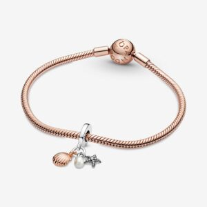 Treated Freshwater Cultured Pearl, Starfish & Shell Triple Dangle Charm